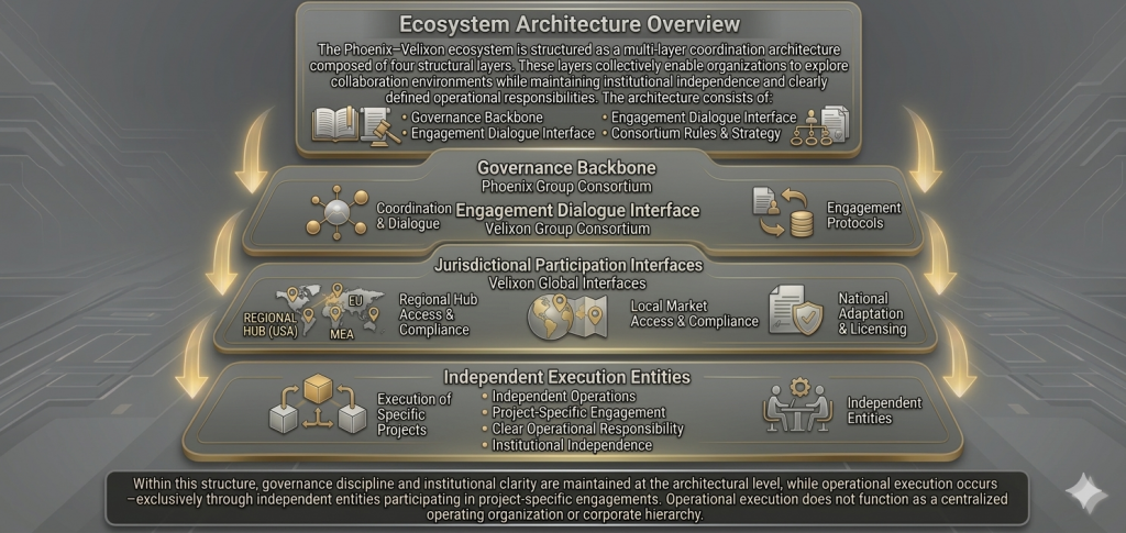The Phoenix–Velixon ecosystem architecture is designed to preserve institutional clarity and prevent structural misinterpretation.